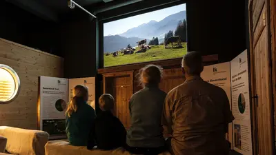 Im Schauraum der Käserei können die Besucher auf 400m² alles über die Geschichte des Käses erfahren, die Käselaibe beim Reifen beobachten und dem Wilden Käser höchstpersönlich dabei zusehen, wie er täglich 1200 Lite Heumilch in 700 Käselaibe verwandelt.