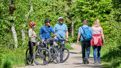 Ein weiterer Anstieg führt zum Wetzsteinfelsen, wo die Möglichkeit besteht, eine flachere Schleife um Gefrees auszulassen und direkt zum Schneeberg aufzusteigen. Oben angekommen, erwartet Sie eine grandiose Aussicht über das gesamte Fichtelgebirge. Die Tour endet mit einer langen Abfahrt über das Seehaus zurück zum Fichtelsee, wo eine erfrischende Pause wohlverdient ist.