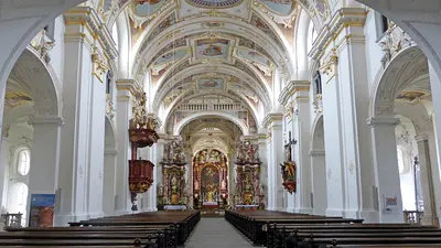 Auf einer Anhöhe am Stiftsplatz in Kempten steht die Basilika St. Lorenz. Sie war einst der erste Kirchenbau im süddeutschen Raum, der nach dem Dreißigjährigen Krieg entstand. Die Basilika in Kempten beeindruckt bis heute mit ihrer mächtigen Kuppel und der Fassade, die durch die Doppeltürme gekennzeichnet ist.
