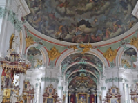 In der Kirche wissen die neu restaurierten Gemälde von Joseph Wannenmacher zu faszinieren. Diese präsentieren St. Gallus im Langhaus und die acht Seligkeiten in der Rotunde. Auch die Hauptorgel von 1815 und die zwei Chororgeln von 1768 und 1770 sowie die spätbarocke Kanzel und das Chorgitter verleihen der Kirche ihre besondere Atmosphäre.