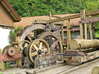 In ihrem Mittelpunkt und ihrer ursprünglichen Umgebung steht eine wassergetriebene historische Säge und Mühle.