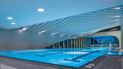 Im zentralen Bereich des StuBay Freizeitcenters befindet sich die Schwimmzone mit einem 25 m langen Sportbecken mit vier Bahnen. Für die Kleinen gibt es ein extra Kinderbecken mit einer Rutsche und Wasserspieltieren.