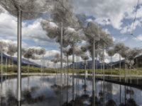 Im 7,5 Hektar großen Garten warten Kunstinstallationen und Bauten. Highlight ist die Kristallwolke oberhalb des Spiegelwassers. Hier schweben 800.000 Kristalle, die für magisches Licht sorgen. Außerdem gibt es einen Alpingarten mit Pflanzen aus dem Alpenraum und einen Aussichtsturm. Im Garten kann man außerdem römische Mauerreste bewundern, die bei Umbauarbeiten 2014 entdeckt wurden und aus dem 3. Jahrhundert nach Christus stammen.