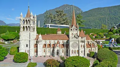 Einige der ausgestellten Attraktionen sind u. a. das Heididorf in Maienfeld, Schloss Thun, das Basler Münster, die Kathedrale von Lausanne und die Kleine Scheidegg.
