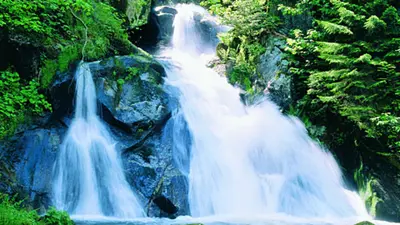 Die Triberger Wasserfälle gehören zu den höchsten Wasserfällen in Deutschland. Über 163 Meter stürzt das Wasser der Gutach über sieben Fallstufen in die Tiefe. Besonders sehenswert ist das Naturspektakel während der Schneeschmelze und nach starken Regenfällen.