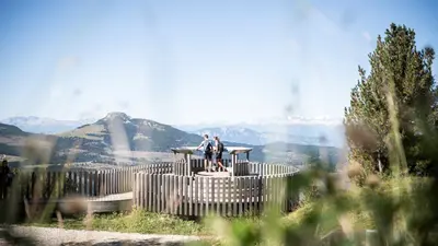 Die familienfreundliche Wanderung Latemar.Panorama führt entlang eines Naturlehrpfades und bietet so die Möglichkeit jede Menge über den Latemar und Obereggen zu erfahren. Die Strecke besticht mit angenehmen Steigungen, Liftunterstützung und spannenden Stationen. Insgesamt solltet ihr mindestens drei Stunden für die 10,5 Kilometer einplanen. Mit dem Sessellift Oberholz fahrt ihr zur Bergstation Oberholz auf 2.096 Metern Höhe. Von dort aus folgt ihr dem Weg 22 über den Feudo Pass, den Weg 504/505, den Reiterjoch, Weg 9 und schließlich zur Epircher Laner Alm. Alternativ könnt ihr auch von der Bergstation auch Weg 23 über die Maryl Alm und Weg 9 bis zur Epircher Laner Alm erwandern. Auf beiden Wegen warten leckere Schmankerl in den Hütten und Restaurants auf dem Weg.