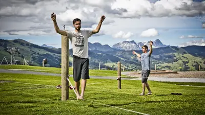 An der Mittelstation der Zwölferkogelbahn wartet der Slackline Parcours mit zahlreichen Trainingsgelegenheiten unterschiedlicher Schwierigkeitsgrade. Die Anlage eignet sich gut für Kinder.
