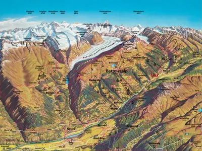 Der Aletschgletscher ist zweifellos ein imposantes Naturwunder von archaischer Schönheit. Von den Aussichtspunkten Hohfluh, Moosfluh, Bettmerhorn und Eggishorn aus wird die Größe dieses Gletschers von allen Seiten erlebbar. Mit einer Länge von 20 Kilometern erstreckt er sich vom Einzugsgebiet in der des Aletschgebiets, das auf 4.000 Metern liegt, bis hinunter in die rund 2.500 Meter tiefer gelegene Massaschlucht.