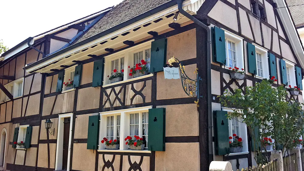 Wer ein Restaurant an einem geschichtsträchtigen Ort sucht, sollte die Dorfmühle auswählen: In der früheren Hostienmühle wurde das Getreide der Kirche verarbeiten. Die Mühle ist immer noch in Betrieb.