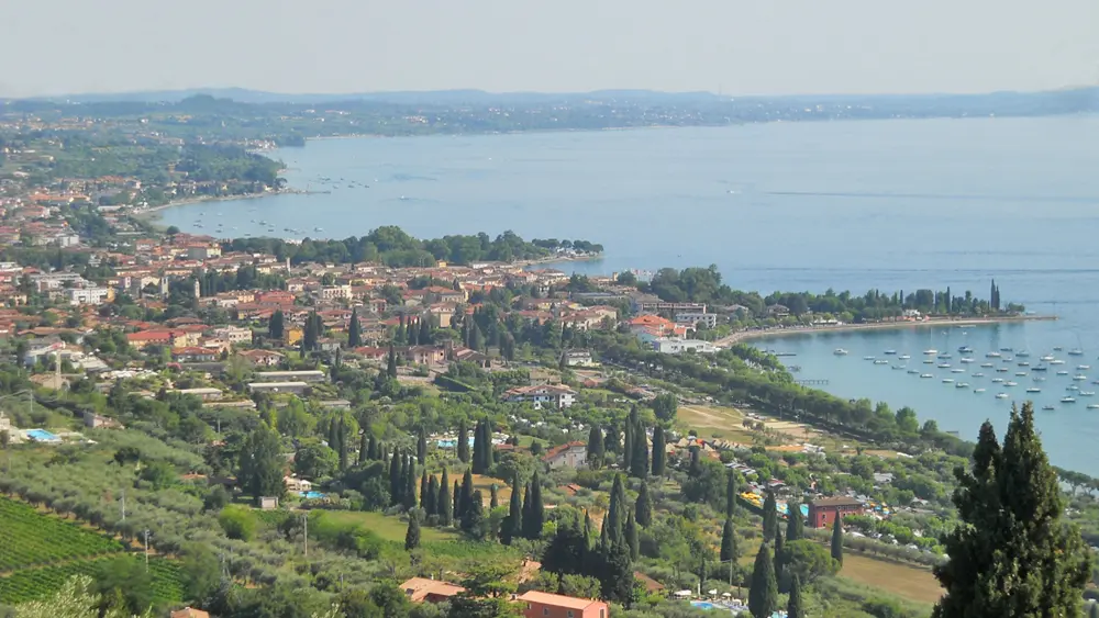 Der Ort selbst hat rund 7.200 Einwohner und gehört zu den größten Ortschaften am Gardasee. Der bei Touristen beliebte alte Ortskern mit dem typisch italienischen Flair gehört zur Region Venetien. Neben dem Tourismus gehört das bekannte Weinbaugebiet zu den wichtigen Einnahmequellen. Der Ort ist eingebettet in eine herrliche landschaftliche Traumkulisse. Am Fuss des Moränenhügels erstrecken sich die prächtigen satten Weinberge und Olivenhaine. Nicht umsonst bekam der Ort den Beinamen "Olivenriviera". Ein herrlicher Ausgangspunkt für alle Mountainbiker und Wanderer. Die Wanderwege führen zu den benachbarten Ortschaften Lazise und Garda. Die hügelige Landschaft lädt zu Wanderungen inmitten der Weinreben ein. Für kulinarische Pausen sorgen kleine feine Lokale.