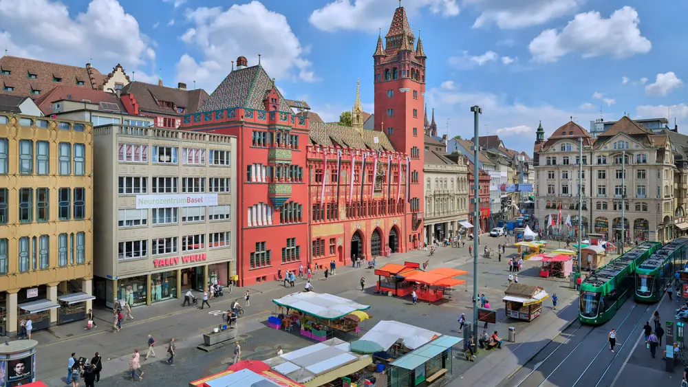 Eine weitere Attraktion ist der der zentral gelegene Marktplatz, an dem das Rathaus liegt, dessen Bau im Jahre 1504 begann. Auch das höchste freistehende Gebäude der Schweiz befindet sich in Basel: Es ist der 250 m hohe Fernsehturm auf dem 522 m hohen Basler Hausberg St. Chrischona.