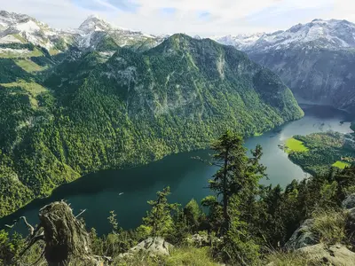 Der Königssee ist eines der beliebtesten Ausflugsziele Deutschlands, er ist etwas 5 km² groß und an der tiefsten Stelle 192 m tief. Beeindruckend ist seine Lage mitten in den Bergen, die Felsen fallen fast senkrecht zum Ufer hin ab. Deshalb ist die bekannte Halbinsel St. Bartholomä mit der berühmten barocken Wallfahrtskirche auch nur über das Wasser zu erreichen.