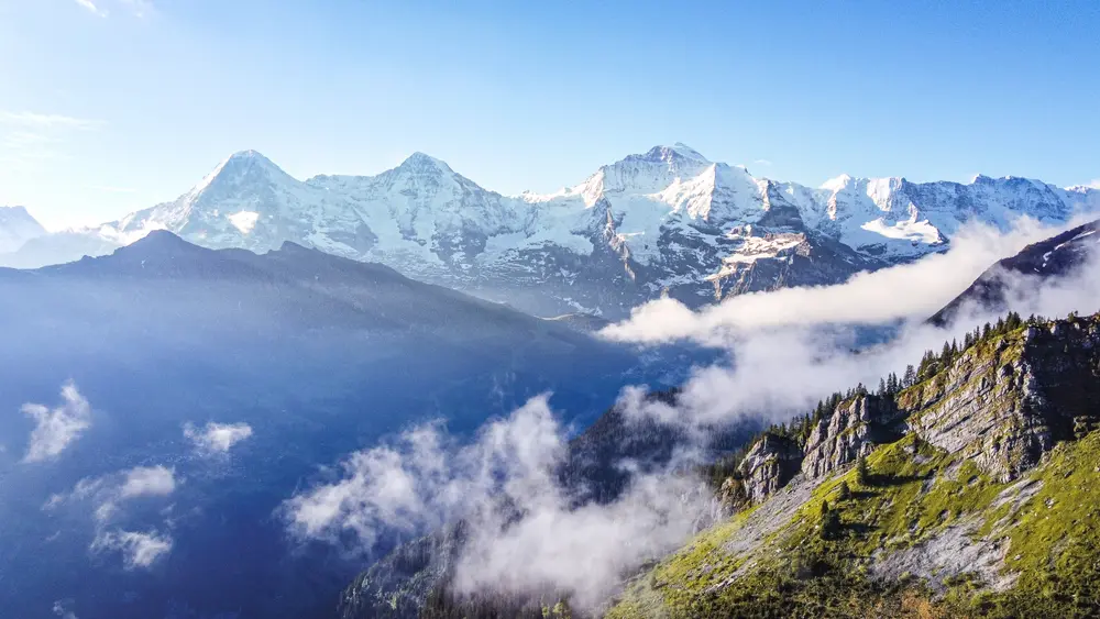 Zu den Höhepunkten des Berner Oberlands zählen die imposanten Gipfel der Jungfrau, Eiger und Mönch. Die berühmte Jungfraubahn bietet spektakuläre Aussichten und führt zu Europas höchstgelegenem Bahnhof, dem Jungfraujoch.