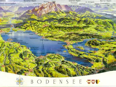 Der Bodensee ist mit 536 km² der flächenmäßig drittgrößte See Mitteleuropas und der größte See in Deutschland. Er unterteilt sich in den Fluss Seerhein, den Ober- und den Untersee. Er ist zwischen 90 (mittlere Tiefe) und 251 Metern tief. Drei Länder grenzen an den See: Deutschland (173 km Küstenlinie), Österreich (28 km Küstenlinie) und die Schweiz (72 km Küstenlinie).