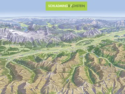 Die Ferienregion Schladming-Dachstein liegt in der Steiermark, eingebettet zwischen den majestätischen Südwänden des Dachsteins, den imposanten Schladminger Tauern und dem markanten Grimming. Diese Urlaubsregion erstreckt sich über acht Tourismuszentren und 13 Gemeinden: