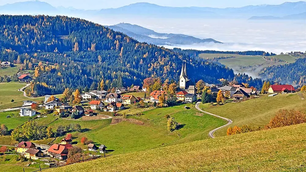 Dank 2000 Sonnenstunden im Jahr gilt sie auch als "Sonnenparadies". Neben dem 1.159 Meter über dem Meeresspiegel gelegenen gleichnamigen Hauptort gehören auch die Orte Grafenbach, Bösenort und Greutschach zur Gemeinde, die sich über eine Fläche von 55 m² erstreckt.