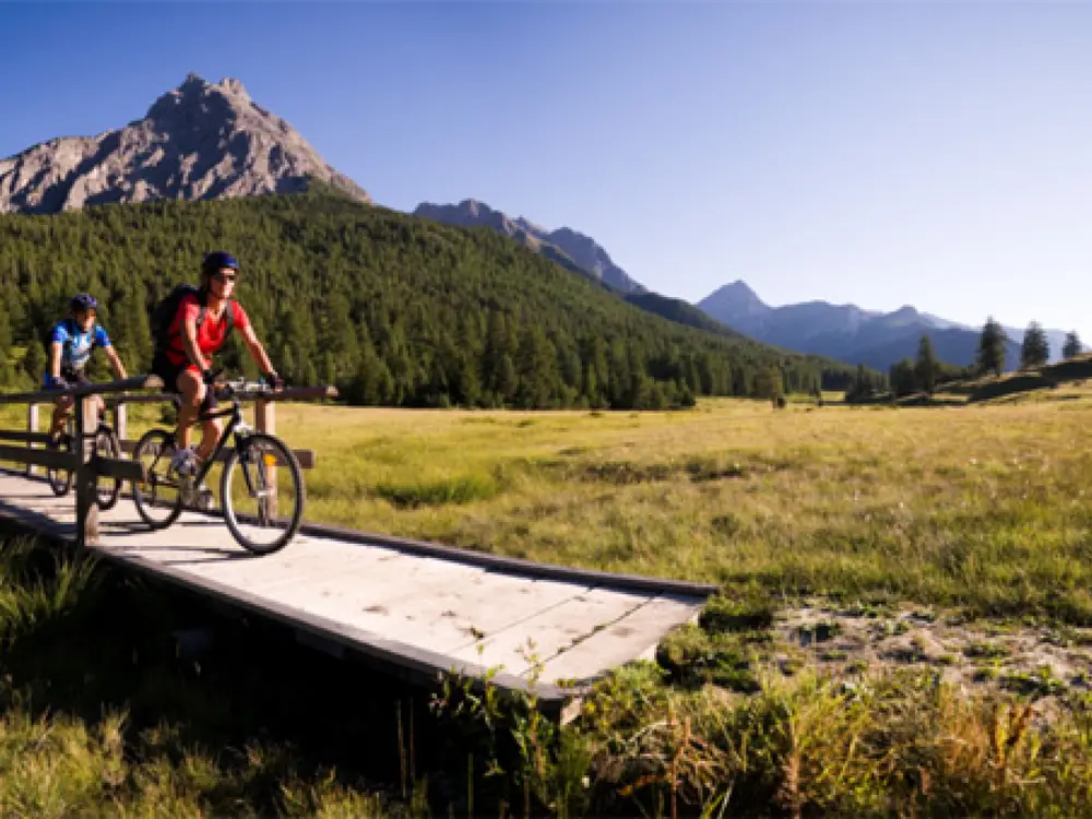 Eine Landschaft in Nationalparkqualität. Der (einzige) Schweizerische Nationalpark selber, das Schloss Tarasp, das Bogn Engiadina Scuol mit dem ersten Römisch-Irischen Bad der Schweiz, echte Engadiner Feriendörfer mit ihren historischen Gebäuden, die reiche romanische Kultur und vieles mehr, das ist das Unterengadin. Ein inneralpines Tal, südlich ausgerichtet und für viele noch zu entdecken. Das Gästeprogramm macht die Ferienregion Engadin Scuol für seine Entdecker erlebbar: Wildbeobachtungen im und um den Nationalpark, Schloßführungen zur Geisterstunde oder eine geführte Bike-Tour sind nur einige Beispiele der zahlreichen Ferientipps.