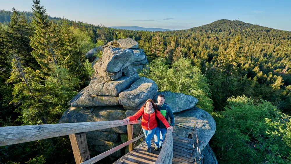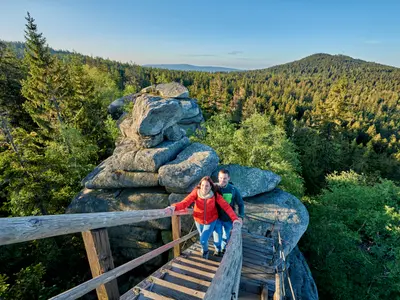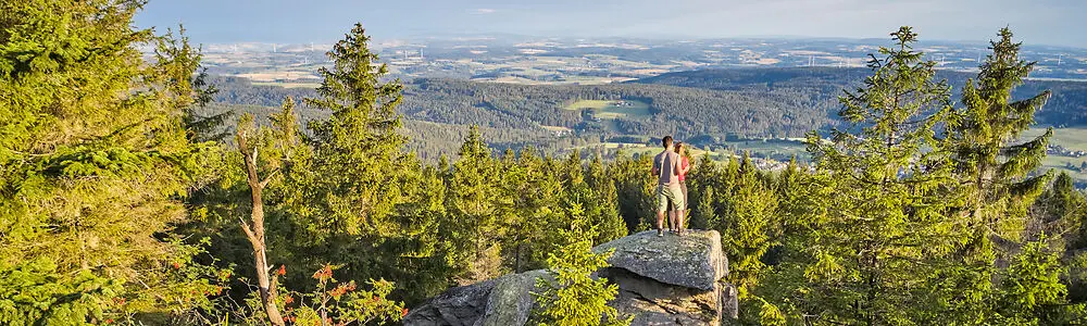 Rund 3.400 km Wanderwege durchziehen das Fichtelgebirge, das mit seinen stillen Tälern, dunklen Fichten- und Buchenwäldern und den außergewöhnlichen Stein- und Felsformationen zum Entdecken einlädt. Besonders empfehlenswert ist der 425 km lange Qualitätswanderweg "Fränkischer Gebirgsweg", der sanft auf- und absteigend durch das Fichtelgebirge führt und so auch für Genusswanderer geeignet ist. Wer es lieber sportlicher möchte, der entscheidet sich für eine Besteigung des Schneebergs und des Ochsenkopfs mit über 1.000 Höhenmetern.