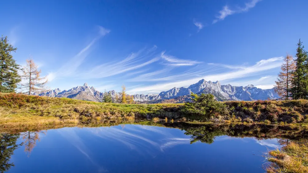 Das Dorf Filzmoos liegt 70 Kilometer südlich der Stadt Salzburg im österreichischen Salzburger Land. Zwischen den Gipfeln des Dachsteinmassivs (2.995 Meter) und der Bischofsmütze (2.458 Meter) ist es der ideale Ausgangspunkt für Naturliebhaber.