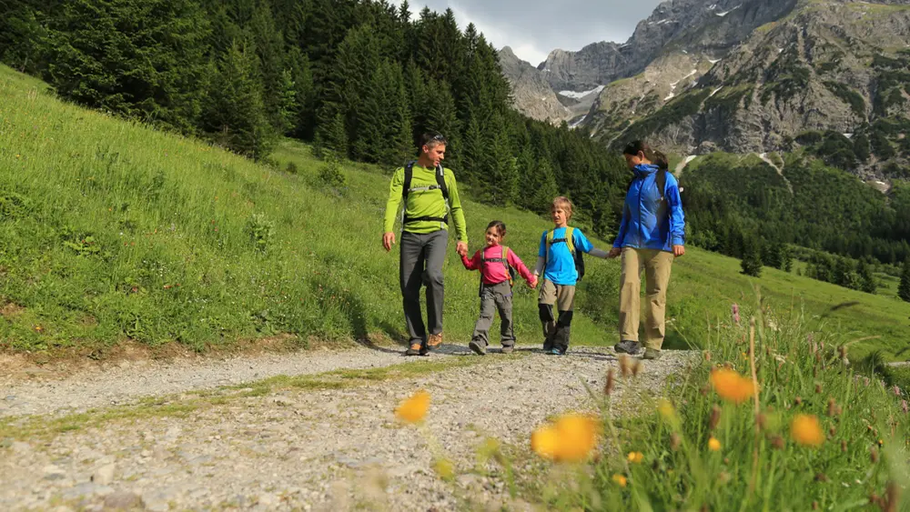 Die Natur kann man beispielsweise auf einer der vielen Talwanderungen genießen oder man steigt hoch hinauf auf das Gottesackerplateau, die Fiderepasshütte oder das Walmendingerhorn. Auf allen Wegen laden zahlreiche Einkehrmöglichkeiten zum Verweilen und Kraft tanken ein.
