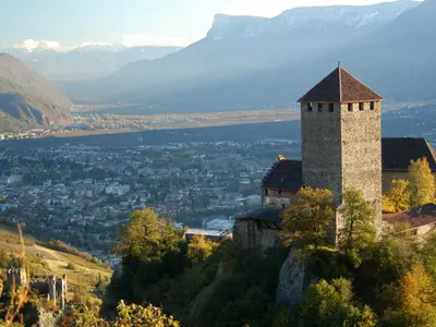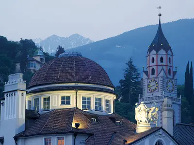 Das Meraner Land, eingebettet in die atemberaubende Kulisse der Südtiroler Alpen, ist eine bezaubernde Ferienregion im Nordosten Italiens. Diese idyllische Gegend liegt im sonnenverwöhnten Südtirol und erstreckt sich entlang des Etschtals. Die Region zwischen Nals und Naturns ist von einer beeindruckenden Vielfalt geprägt. Hier verschmelzen mediterranes Flair und alpine Landschaften auf faszinierende Weise. Das milde Klima begünstigt das Wachstum von Palmen, Zypressen, Weinreben und sogar Olivenbäumen, während im Hintergrund die majestätischen Gipfel der Texelgruppe emporragen.