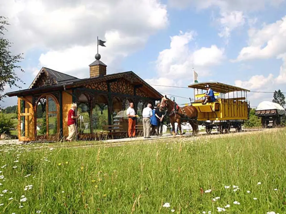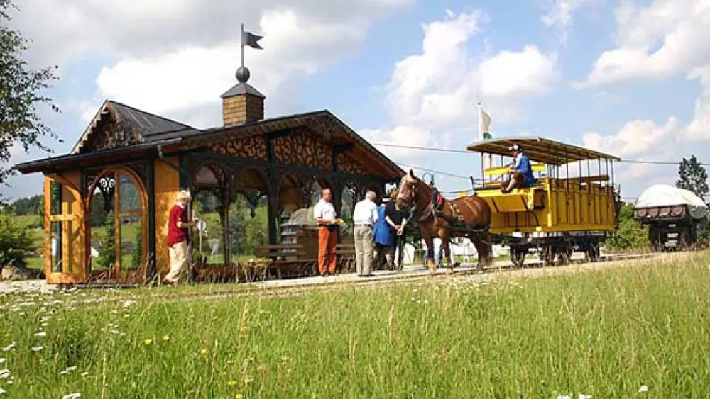Die Fahrt mit der historischen Pferdeeisenbahn in Kerschbaum bei Freistadt im Mühlviertel, ist nicht nur für Einheimische, sondern für alle Oberösterreich Besucher ein absolutes Muss. Die Fahrt mit dem originalgetreu nach gebauten Luxuswagen Hannibal, mit dem einst der Kaiser reiste, oder mit dem Gesellschaftswagen Franz Josef, ist ein Erlebnis für die ganze Familie. Am steigt beim historischen Salettl ein und fährt auf dem 500 Meter langen wiederhergestellten Trassenstück bis zum prachtvoll renovierten, historischen Scheitelbahnhof. Dieser beherbergt heute in den ehemaligen Gewölbestallungen das interessante Pferdeeisenbahnmuseum. In der originellen Kutscherstube oder in dem romantischen Biedermeierstüberl werden Köstlichkeiten wie der Rossknödel oder einen herzhaften Gleishupfer serviert.