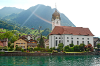 Ebenfalls sehenswert ist das Örtchen Beckenried. Urwüchsig hat es sich seinen nostalgischen Charme erhalten. Hier steht unter anderem die prunkvolle Barockkapelle Maria im Ridli, die einen Besuch wert ist.