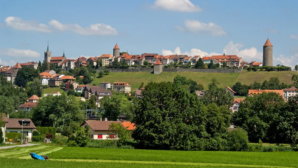 Im Schweizer Kanton Fribourg erhebt sich 22 Kilometer südwestlich der gleichnamigen Stadt der kleine Ort Romont über das Glânetal. Erbaut auf einem freistehenden Hügel überzeugt das 5.000-Einwohner-Städtchen nicht nur mit seiner idyllischen Lage und seinem attraktiven Umland, sondern auch mit seiner gut erhaltenen Altstadt und seinen gelebten Traditionen. Archäologische Spuren reichen bis in die Bronzezeit zurück, ehe die Herzöge von Burgund im 10. Jahrhundert die erste dokumentierte Siedlung namens "rotundus mons" (runder Berg) anlegten. Im 13. Jahrhundert entstand unter Peter II. von Savoyen schließlich die heutige Stadt mit ihrer charakteristischen Befestigung.