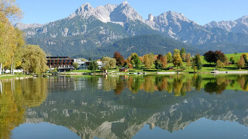 Reich an Kirchen, Schlössern und Burgen präsentiert sich der Ferienort Saalfelden am Steinernen Meer. Oberhalb von Schloss Lichtenstein schmiegt sich Europas letzte Eremitage an den Felsen. Die Einsiedelei ist ein faszinierender Kraftort mit toller Aussicht. Bei einem Urlaub mit Kindern bietet sich der Besuch im Naturbad Ritzensee an.