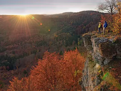 Bereits vor rund 40.000 Jahren lebten auf der Schwäbischen Alb Menschen und hinterließen ihre Spuren: So wurden hier die ältesten Kunstobjekte der Menschheitsgeschichte gefunden. Heute gibt es in der Region viele schöne Städte und Orte, darunter die Studentenstadt Tübingen mit dem berühmten Hölderlinturm am Neckar, Blaubeuren mit den schönen Fachwerkhäusern und dem berühmten Blautopf und die Leinenwerberstadt Laichingen.